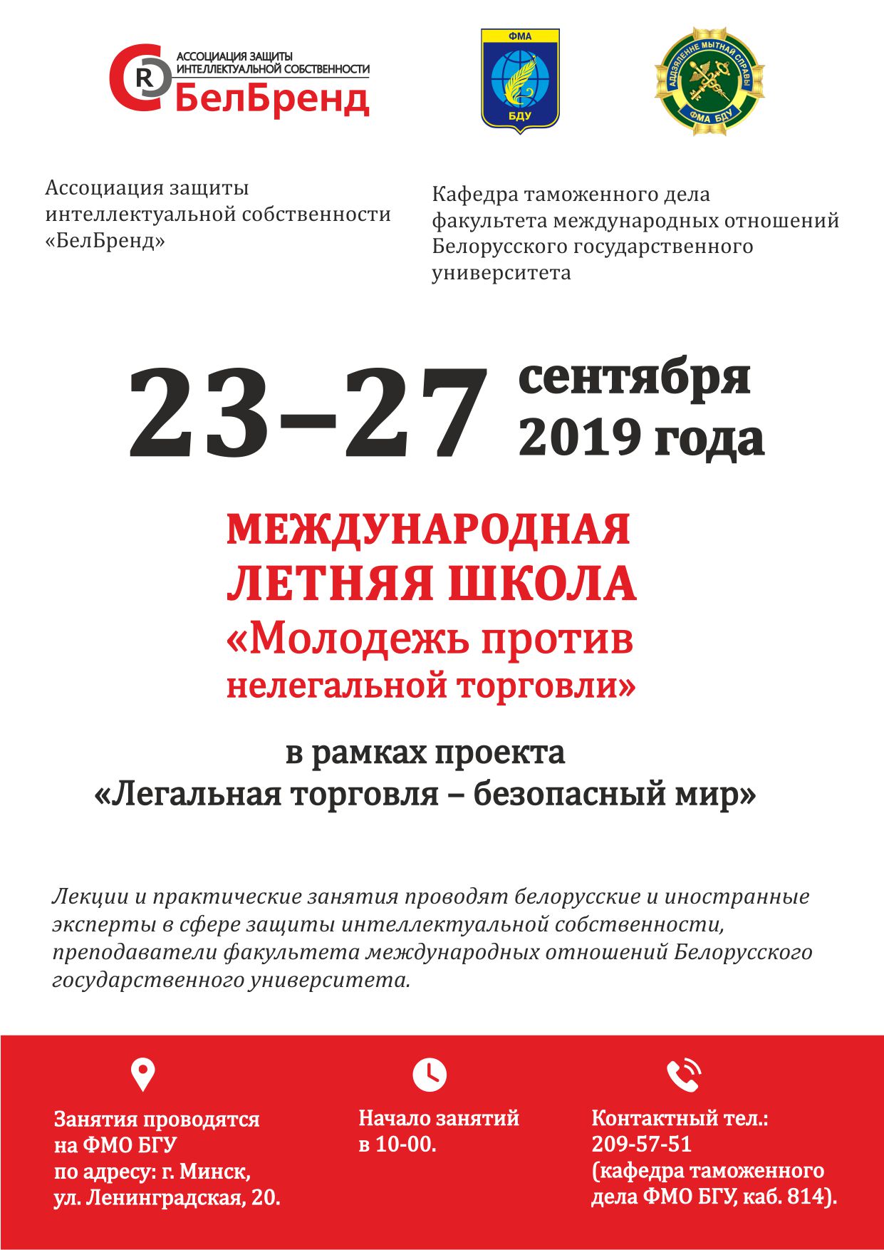 Занятия пройдут на базе Белорусского государственного университета в партнерстве с кафедрой таможенного дела БГУ для представителей белорусских предприятий, студентов БГУ специальности «таможенное дело», представителей Белгородского государственного национального исследовательского университета (Россия, г. Белгород), молодежных общественных организаций.