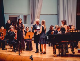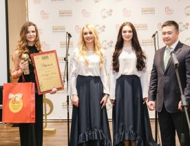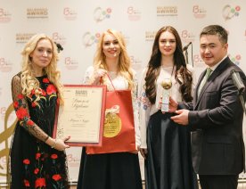 Специальный диплом в знак признательности и благодарности за активное участие в мероприятиях Международной музыкальной премии Евразийского экономического союза BELBRAND AWARD Председатель Оргкомитета вручил Веронике Сахаровой (Республика Беларусь).